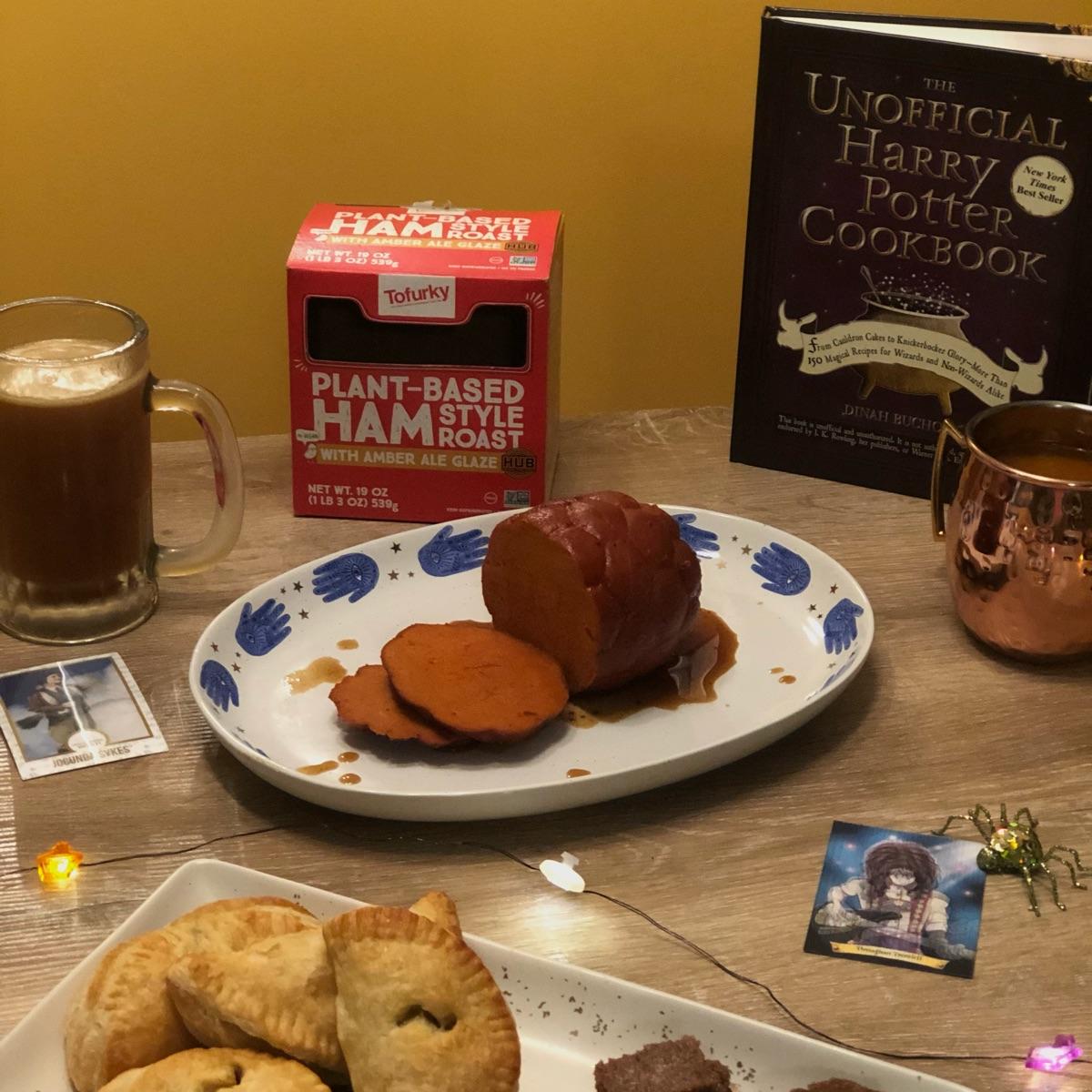 This Tofurky Plant-Based Ham Style Roast was my first time trying any sort of vegan ham and it went better than expected! Made it for a Harry Potter themed dinner and the roast look was fantastic (albeit mini) while taste and texture-wise, it’s kinda more hot dog-esque than ham-like with the meaty peppery flavor and the easier cut. The amber ale glaze also adds a nice warm flavor dimension to it, giving sweetness and fall notes of clove which are tasty! 🍖🍺 #veganisnotscary