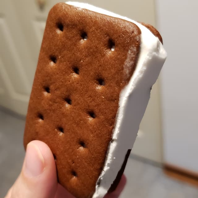 Oh, how I've missed ice cream sandwiches. This small, but incredibly delicious sandwich checks all of my boxes in regards to taste, texture, and availability. Although small in size compared to the cruelty-filled ones from childhood, the texture and taste is exactly what I remember. Two chewy (yet firm) chocolate outter pieces surround soft serve vanilla ice cream. There is a sweetness here that is not overwhelming. An overall very dessert.