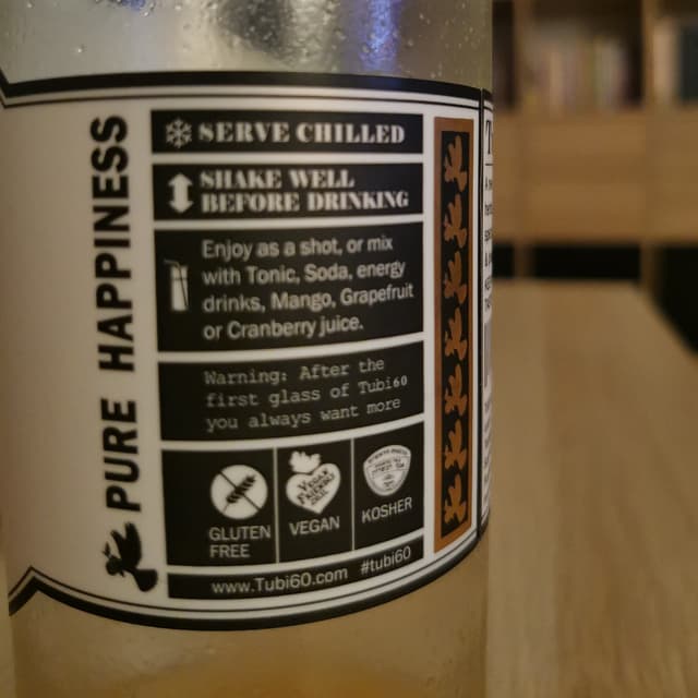 Tubi 60 is an Israeli spirit. The drink is made exclusively from high-quality, natural ingredients. I love the fresh sour taste and for me applies what is written on the bottle as warning:
