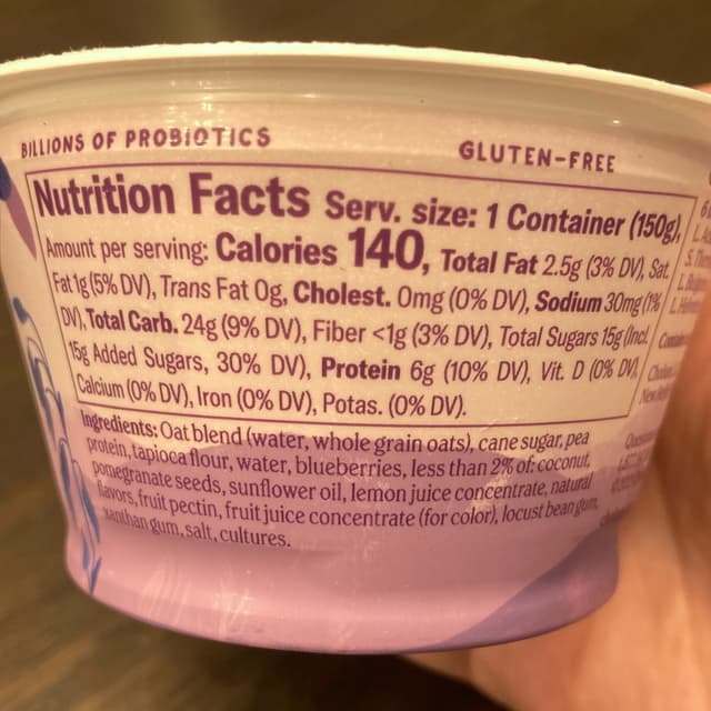 This was a yummy yogurt! Chobani Oat yogurt made with an oat blend of water and whole grain oats. There are blueberries and pomegranate seeds hidden inside, like buried treasure. The consistency of the yogurt is the right thickness. The blueberry-pomegranate flavor is sweet with a bit of lemony tartness. Only 140 calories, with 6g of protein and only 2.5g fats. Definitely filling and enjoyable! Bought on sale at ShopRite for $1.00.