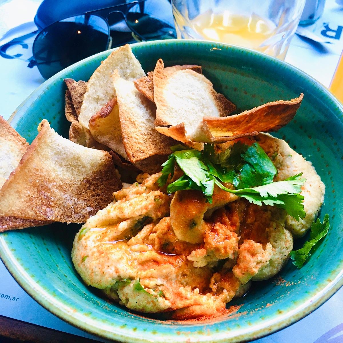 Habian muy pocas opciones veganas en el menu, y estuve un buen rato tratando de decidir que comer asi que pedi este hummus. El gusto era rico pero nada wow.. Precio 590 pesos