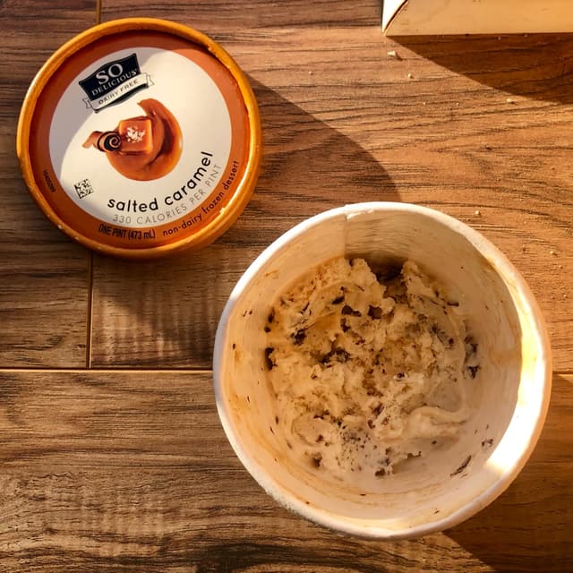 Well salted caramel isn’t my favorite flavor ever, so I don’t know if I’m the best judge of this So Delicious Salted Caramel Swirl Mousse. That being said, I don’t hate it; the mousse is super light and fluffy with swirls of caramel and chunks of chocolate. I could do with more chocolate and a stronger caramel flavor, but it’s ok! 🍨🍫🍮 #veganisnotscary