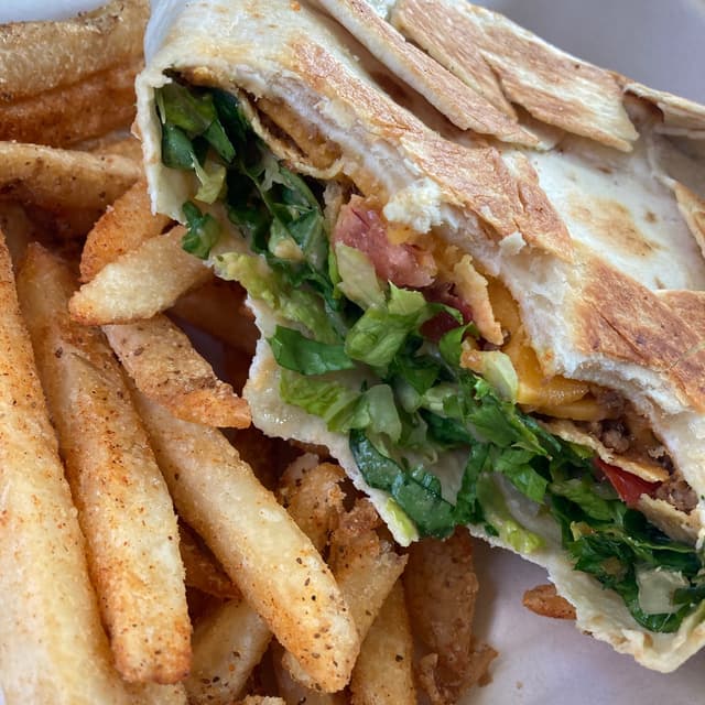 The J Selbys crunch wrap now has beyond crumbles. Very tasty. Love the crispy tortilla outside and it’s stuffed with lots of vegan goodness! The fries are crispy and delicious. #veganisnotscary