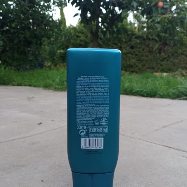 Crema suavizante para cabello normal, "hidratación total", con extracto de flor de cactus. Mejor producto que el champú de la misma línea. Muy bien de precio.