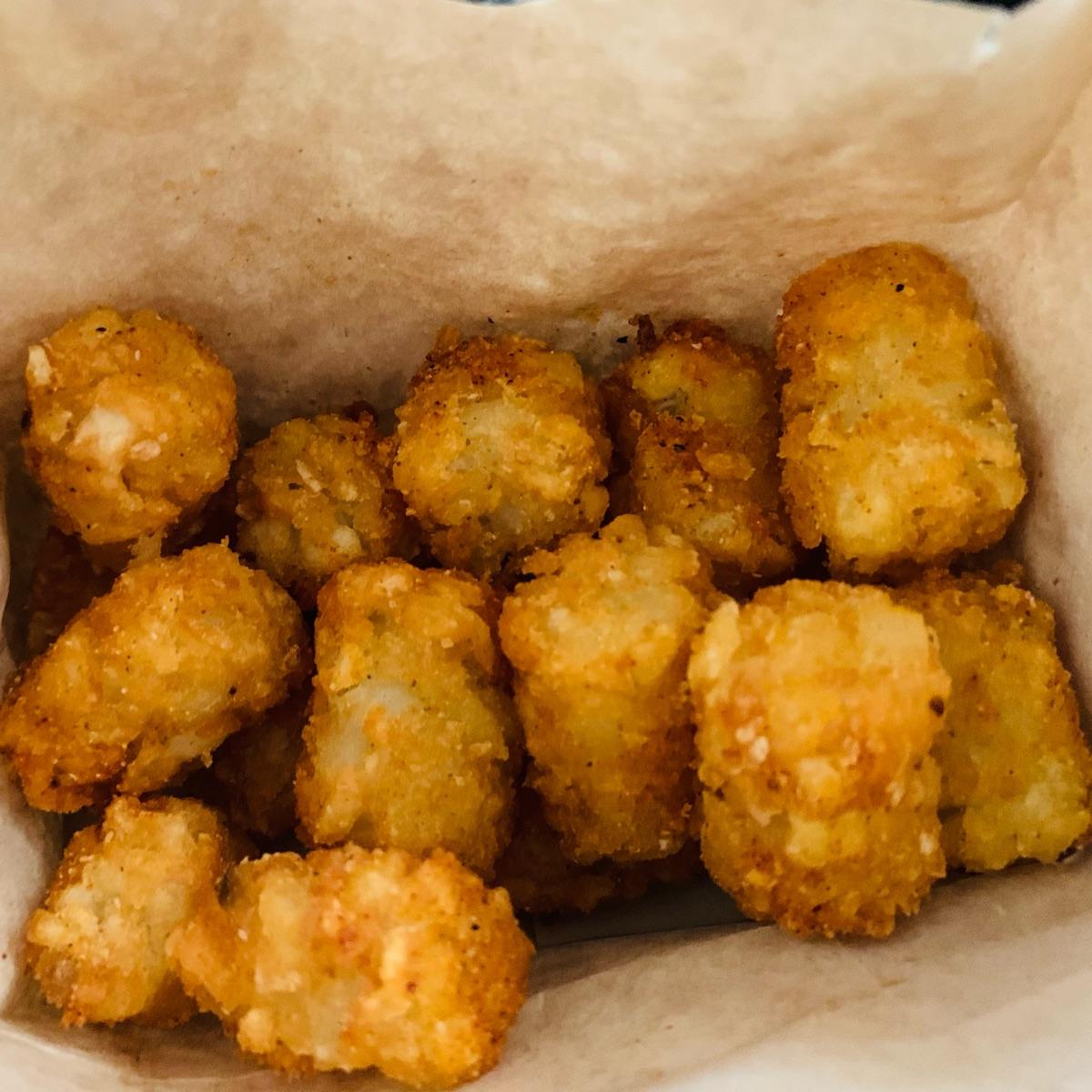 Love the extra spice on these delicious tater tots! Great dipped in ketchup or vegan mayonnaise. 🥔 #uplandspeak #veganisnotscary #friendanimalsanctuary