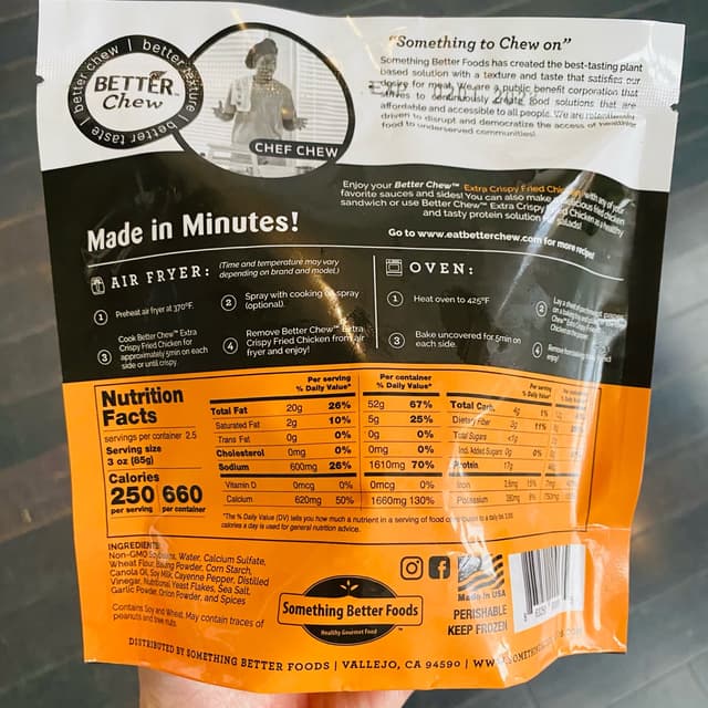 Delicious! I needed to broil for a bit to get crispy but they ended up quite satisfying - crispy on the outside and soft on the inside. This reminds me of the double-frozen tofu fried chicken; pretty sure it’s either that or a similar method. Was expecting larger pieces but they are essentially varying sizes between a nugget or tender. #veganisnotscary