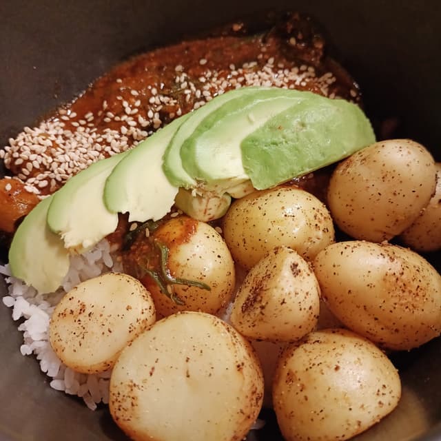 Este bowl es delicioso, tiene la porción exacta y la combinación perfecta de romeritos, con papas cambray, arroz, frijoles y aguacate. Nunca me habían gustado tanto los romeritos como estos que hicieron aquí por temporada navideña. Lo recomiendo mucho #granjitatyh