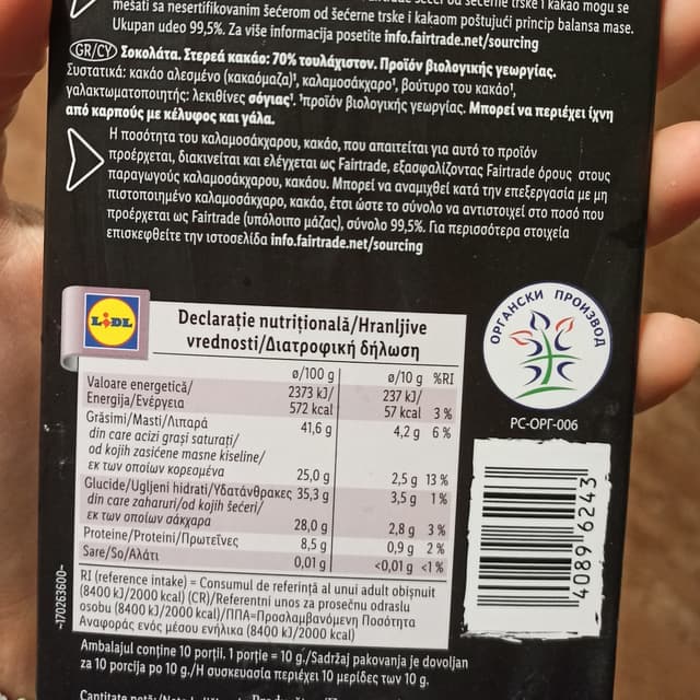 First time I tasted this chocolate, it's nice, a bit bitter. It's fair trade and organic! Bought it from lidl 1,50€ really good deal!