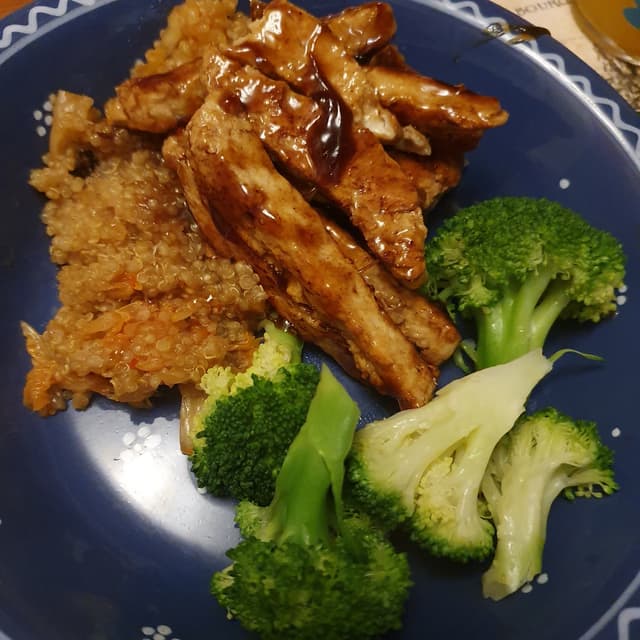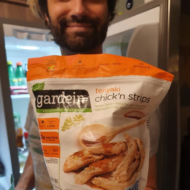 Gardein is one of my favorite brands. I think I love all of their products! These teriyaki strips were really nice. Excellent texture, not too dense or too squishy. It cooked to absolute perfect and came with a tasty teriyaki sauce. Our meal was a bit random with teriyaki chickn, kimchi infused quinoa and steamed broccoli. It was delicious!!