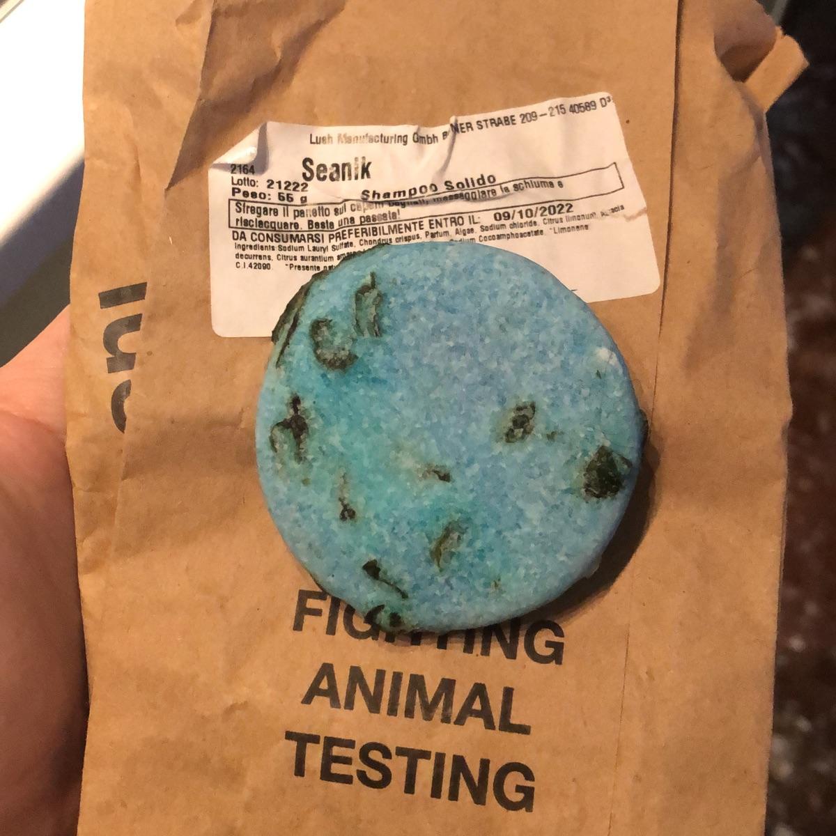 è la prima volta che provo uno shampoo solido, avendo i capelli tendenzialmente grassi avevo paura che non li lavasse bene e di trovarmi male. mi sono dovuta ricredere! in negozio mi hanno consigliato lo shampoo solido Seanik e devo dire che mi trovo abbastanza bene. la fragranza è fresca e piacevole e dona leggerezza. credo che i miei capelli debbano ancora abituarsi ma di sicuro finora hanno reagito bene. lo shampoo ovviamente è vegan e costa 12€, forse un prezzo un po’ altino, ma il fatto di non avere più la solita confezione in plastica è fantastico. Lush non mi delude mai!