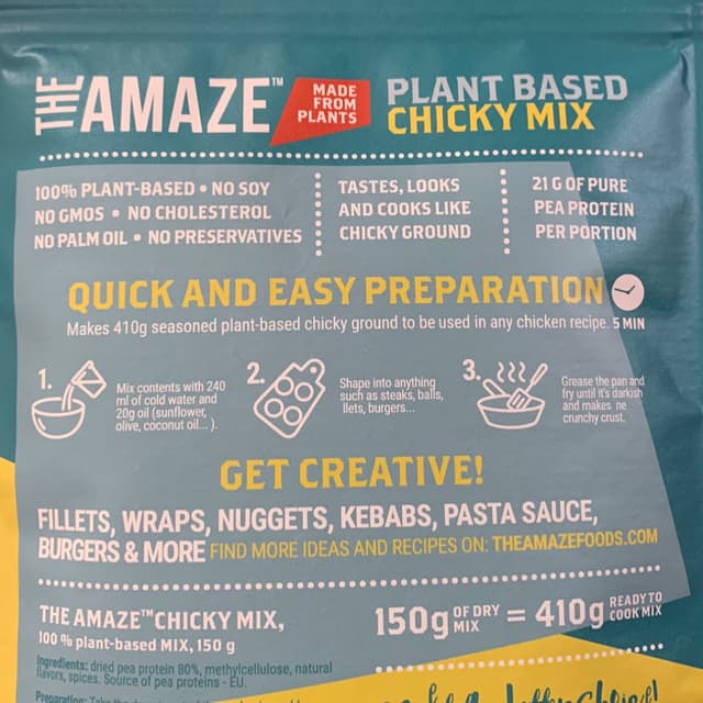 Interesting product. High in protein. You are supposed to mix it with water, shape patties and cook it in the saucepan for a few minutes. I found it weird that the instructions did not say how much product and water is needed for one or two patties, it just tells you to mix 240ml of water and 20g of oil with the 150g of mix to get 410g of product..and that’s just too much math. I tried using just a third of the mix and the taste was ok, but the patties never cooked thoroughly. I probably messed up with the measurements but I just never went back to trying to make it again.