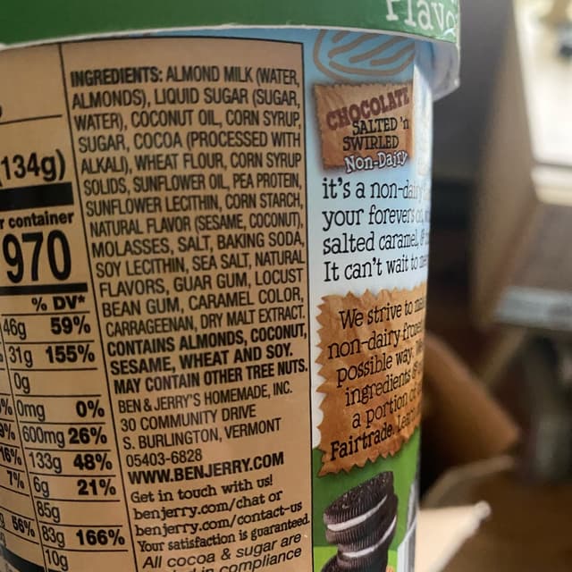 Ben & Jerry’s dairy-free ice cream is no doubt delicious, but the ingredients could be refined for health & quality purposes. Corn syrup is in the ingredients, as well as carrageenan, caramel color, and other questionable ingredients. Because of these ingredients, I will likely choose other dairy-free ice cream options before choosing theirs again.