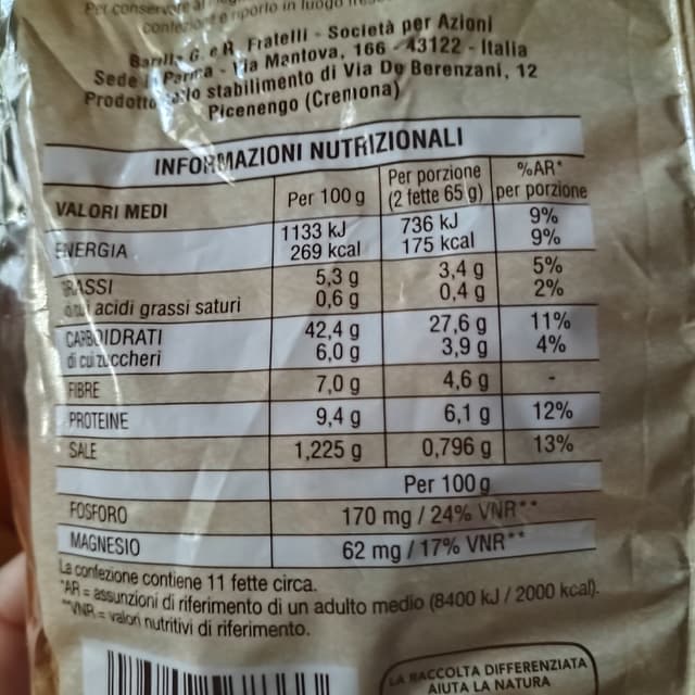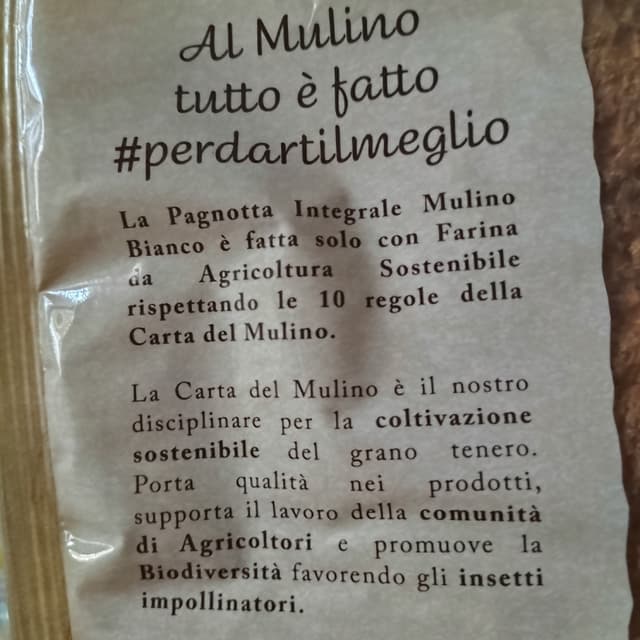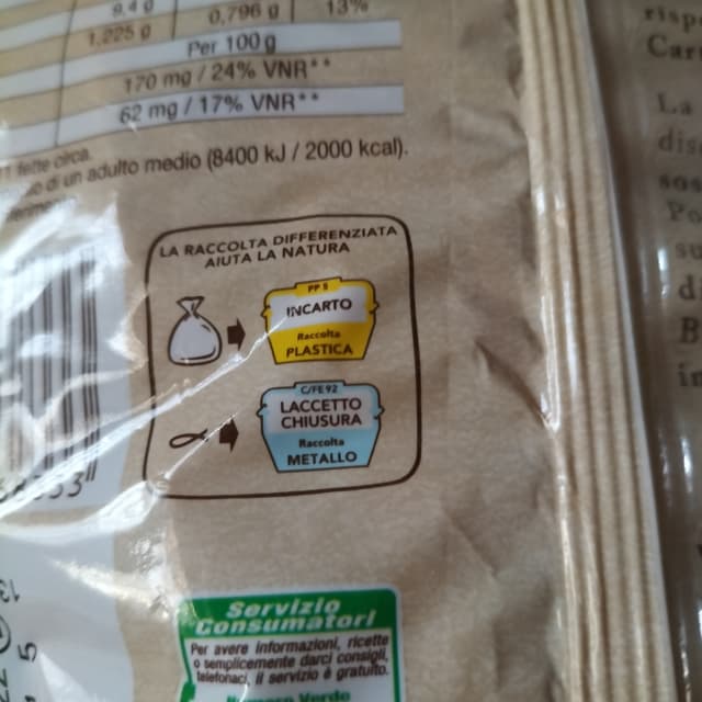 Panotta di farina integrale con lievito madre, già tagliata a fette, appena si apre la confezione si sente quell'odore di alcool solito del pane confezionato🙄una volta tostato è buonissimo😃sa solo di pane caldo, bontà assoluta 👌✅✅✅