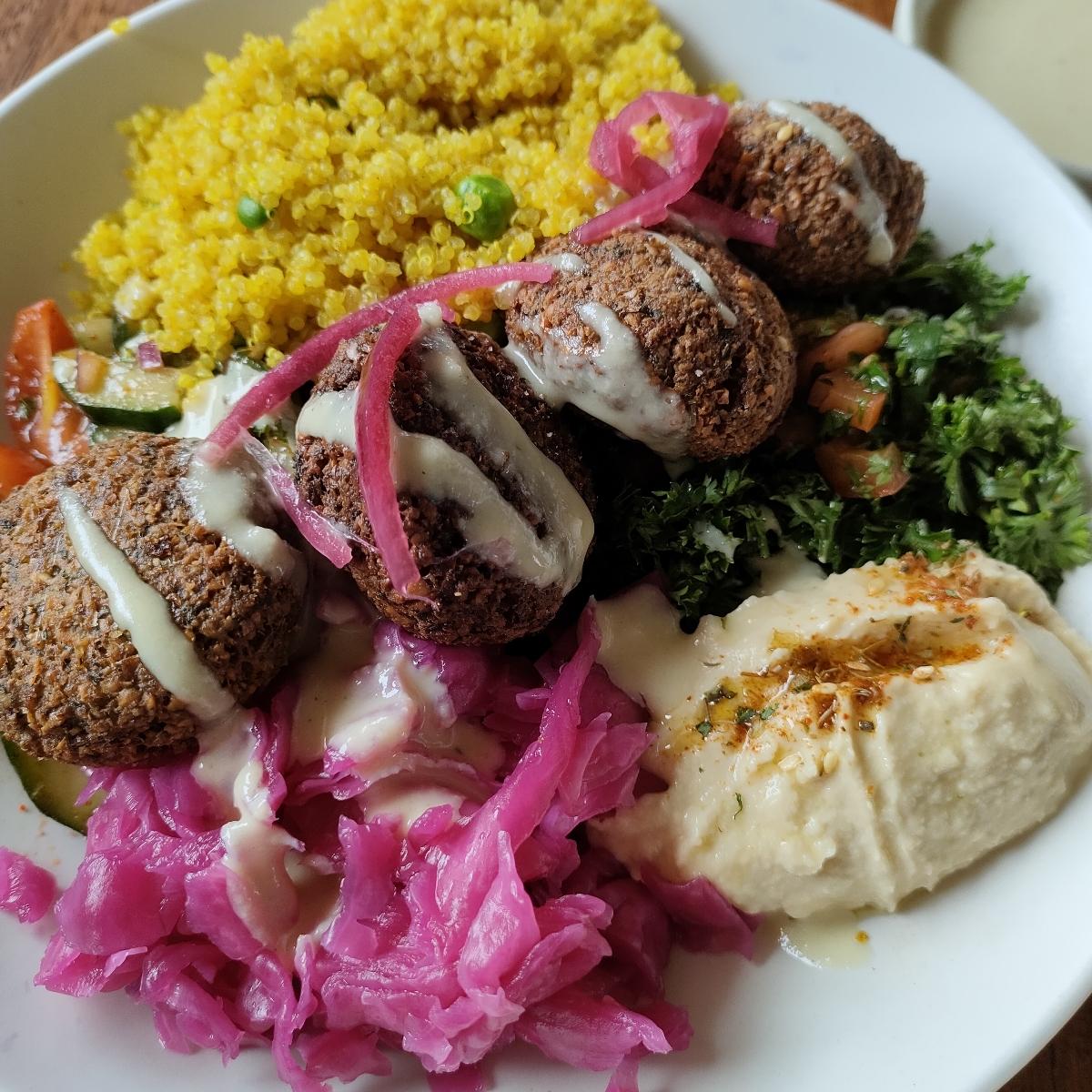 Even if this bowl has nothing to do with Greek food, it's absolutely amazing. Crispy falafel, creamy hummus, fresh salad... Yum!