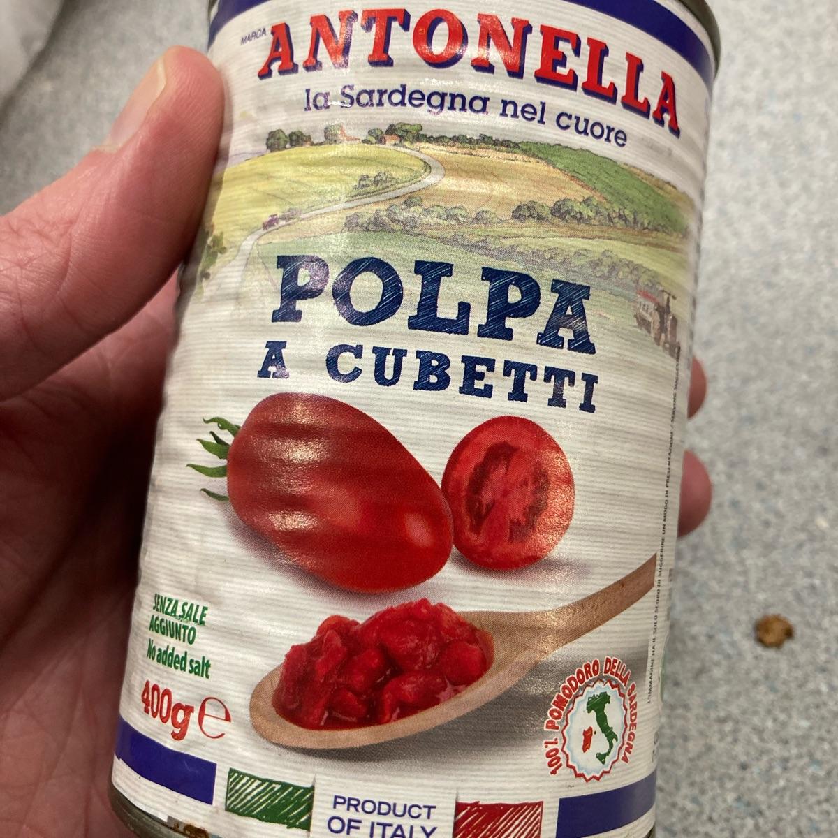 Random tin of Sardinian chopped tomatoes, very nice flavour, no added salt or oils. Purchased from Ocado