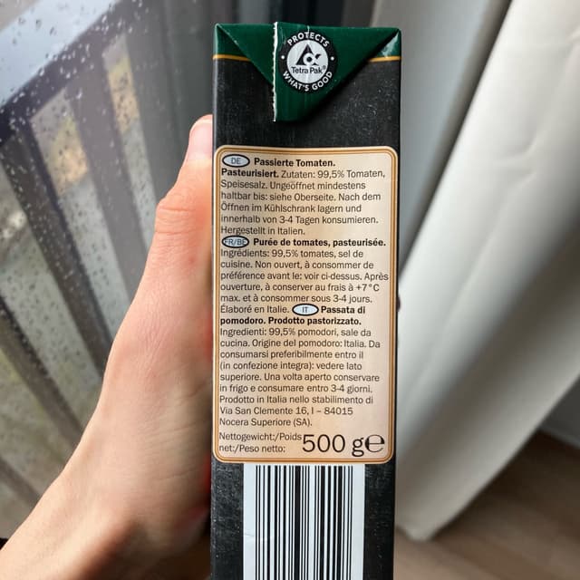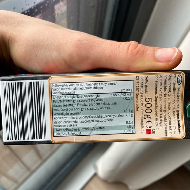 Simply tomato purée 🍅 It’s quite sour, but I didn’t expect much for 0.55€. Probably includes lots of unripe tomatoes haha