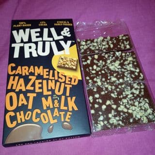 A lovely dairy free chocolate loaded with hazelnuts that are coated in a lovely caramelized coating