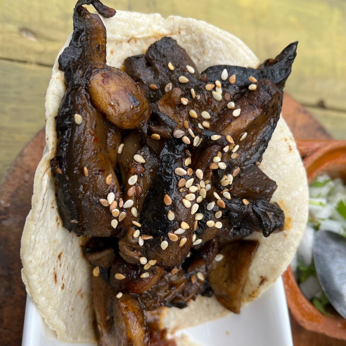 Es un mix de champiñones y es un sabor diferente (no de barbacoa) pero es lo máximo! Probamos el de chorizo, empanizado, pibil, y chicharrón y esté ganó 👏🏻👏🏻.