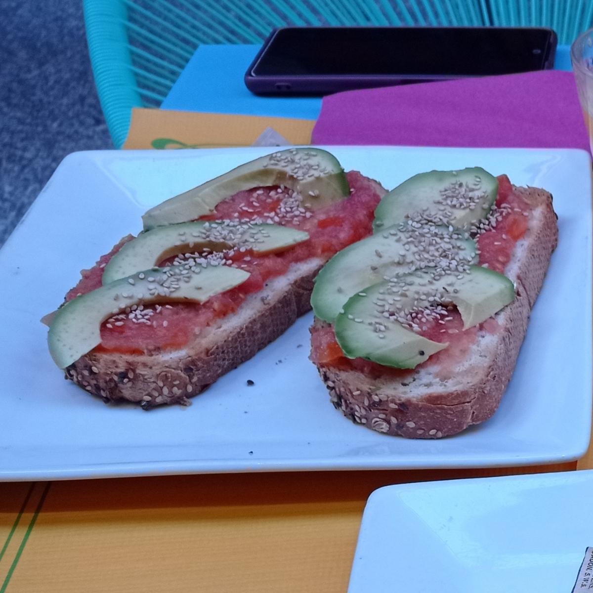 Muy rica. El aguacate en su punto. Ración generosa. Dos tostadas por 4'2€.
