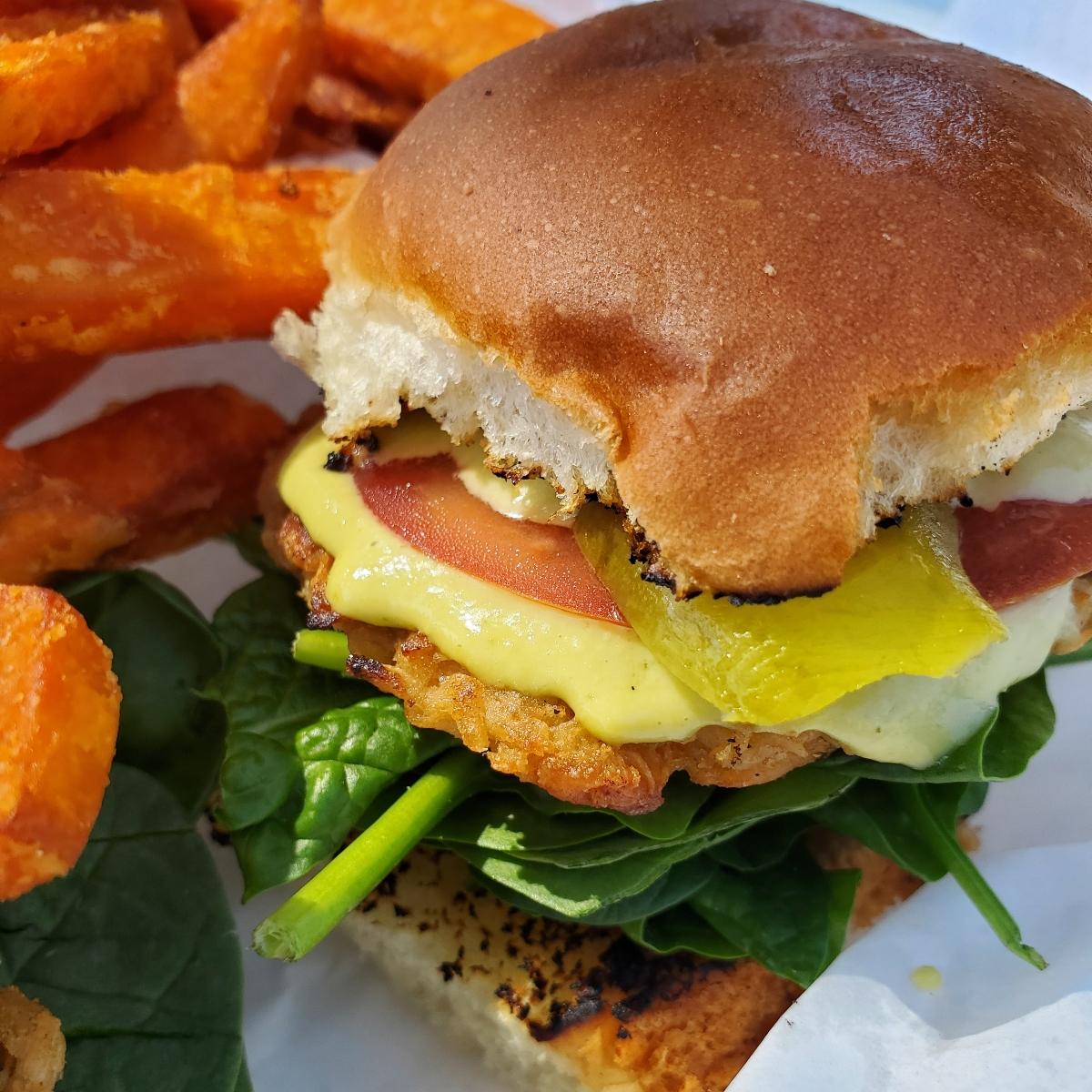 I loved the size of these sliders, nice and small so I could get a good taste but also have room to try other items! Next time I'd choose ranch instead of the garlic avocado sauce, but I still thoroughly enjoyed this meal, especially the pickles and sweet roll!