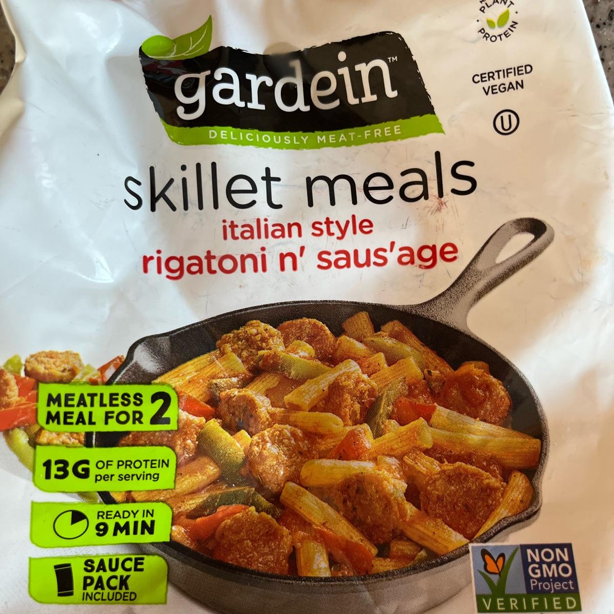 Introducing Gardein's new Skillet Meals Italian Style Rigatoni 'n Saus'age - a vegan pasta dish that offers a taste of authentic Italian flavors. Made with Gardein's meatless sausage, this dish features al dente rigatoni pasta tossed in a rich and savory tomato sauce. The combination of hearty protein and carbs makes it a satisfying meal that is sure to become a family favorite. The skillet format makes it easy to prepare a delicious meal in no time. With its convenient skillet format, it's easy to whip up a satisfying and satisfying meal in no time. Try it today and experience the unbeatable taste of Gardein.