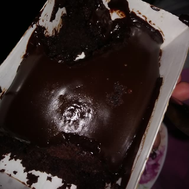 My partner accidentally put this in the freezer so I microwaved for twice the recommended time. The melted chocolate topping was lush but sticky like peanut butter. The sponge was just typical chocolate sponge.