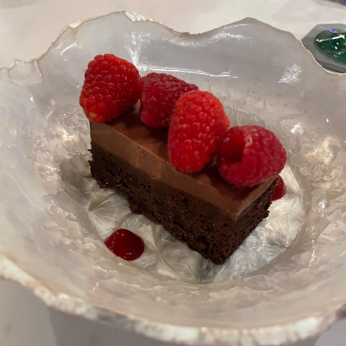 Morbida mousse di cioccolato fondente con lamponi freschi