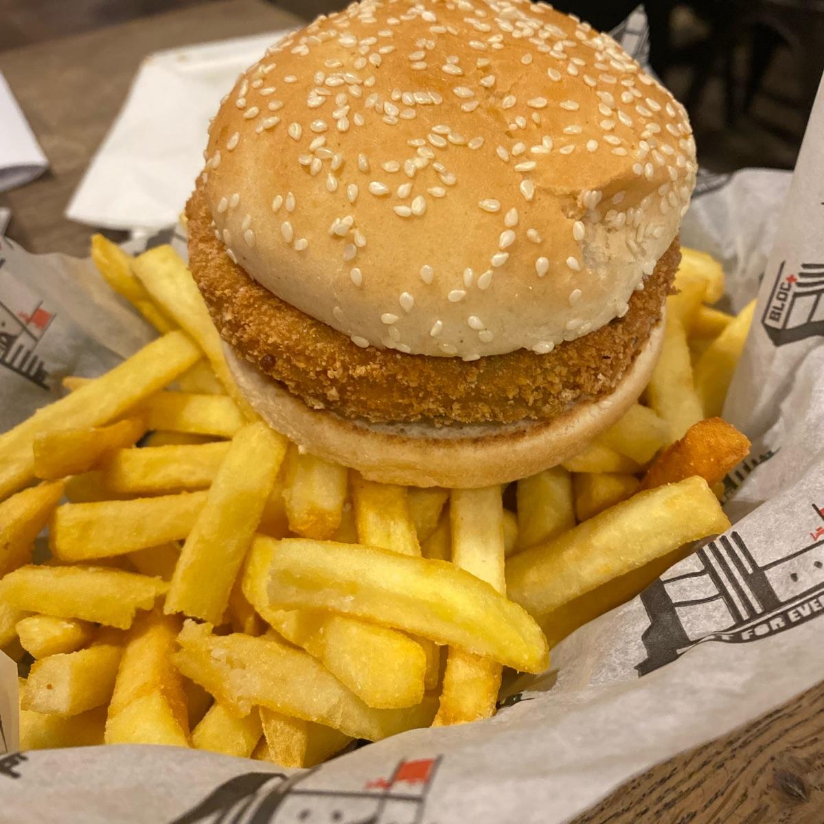 This is what comes with the £3 burger Tuesday deal. Really shocked there wasn’t even any lettuce, and the website said it came with slaw but evidently not. The actual burger itself was a veggie patty and was really tasty, the portion of chips was huge too. Just put some greenery on there and I’ll be content pls Bloc