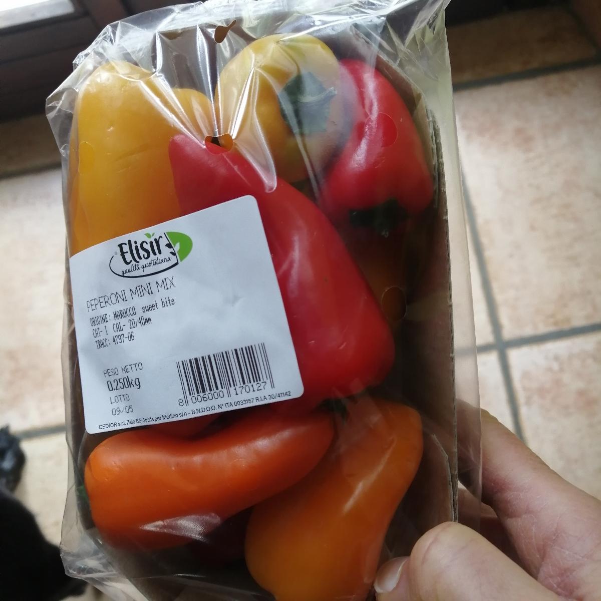Piccoli peperoni gialli arancioni rossi questi vengono dal Marocco sono dolci ideali per insalata o peperonata
