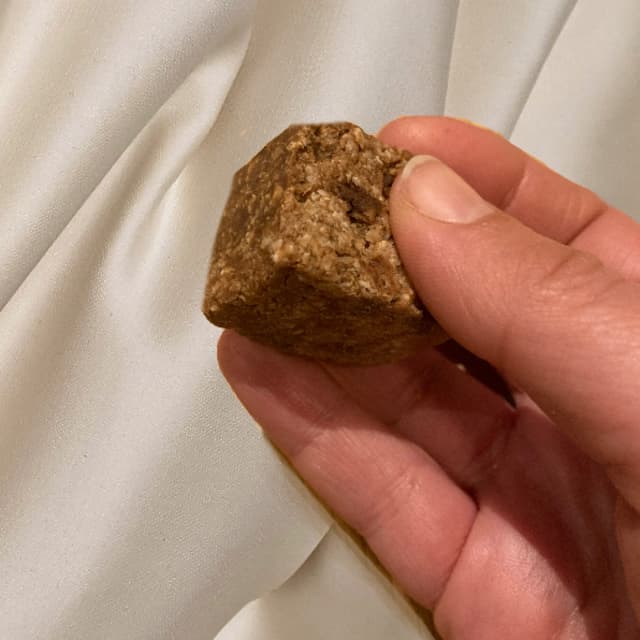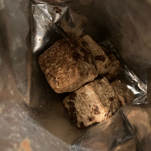 这些 “heavenly hunks“ 是真正的饼干块。它们非常密集,但很小,所以吃一些(份量是 1 块)可以很快加起来。 尽管配料表中有椰子丝,我没有注意到它们。 总的来说,它们对我来说似乎有点干,但巧克力片是一个很好的添加物,因为它们每一口都很丰富。