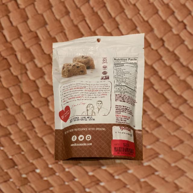 Questi Hunk celesti sono veri e propri pezzi di biscotto. Sono piuttosto densi, ma piccoli, quindi mangiarne alcuni (la dimensione della porzione è di 1 pezzo) può aumentare rapidamente. Pur avendo brandelli di cocco nella lista degli ingredienti, non li ho notati. Nel complesso, mi sono sembrate un po' asciutte, ma le gocce di cioccolato sono una bella aggiunta, dato che sono abbondanti in ogni boccone.
