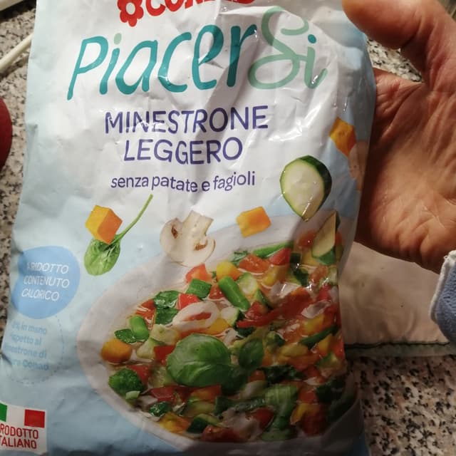 Minestrone in busta surgelato senza fagioli né patate c sono però i funghi che non m piacciono particolarmente 😅 preso al Conad