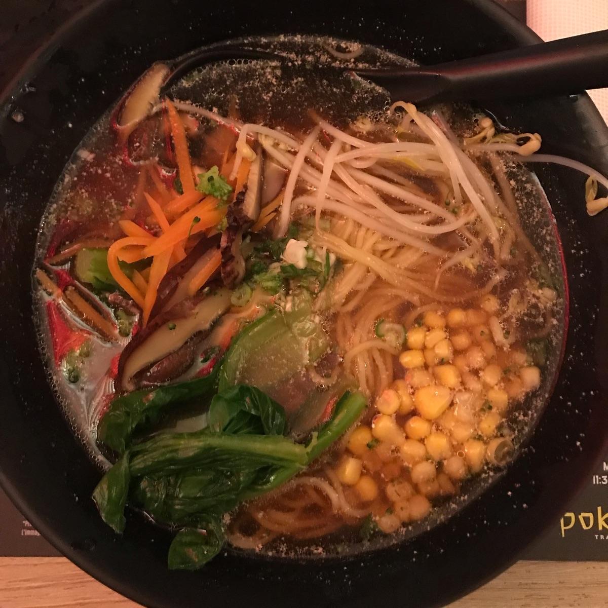 Ramen con brodo di alga kombu, verdure miste (tra cui anche pak choi) e shiitake. Buonissimo!
