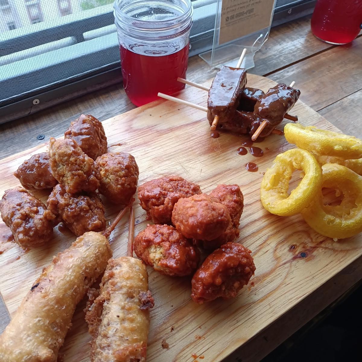 El paquete del súper bowl de este año traía boneless de seitán BBQ y con hot sauce, aros de cebolla, costillitas BBQ, banderillas y de postre un brownie esponjoso. Estaba muy rico todo, perfecto para disfrutar de una tarde de domingo.