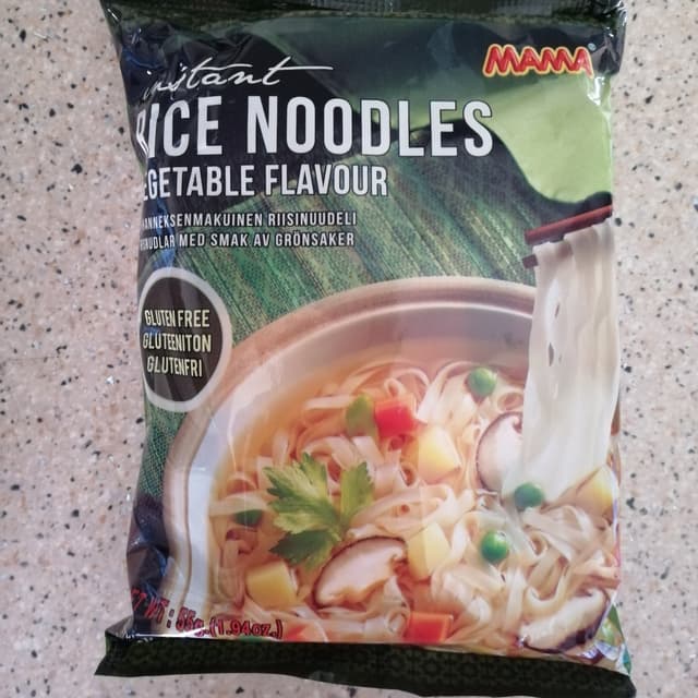 Tasty, quick and warm instant meal of vegetable flavour rice noodles.