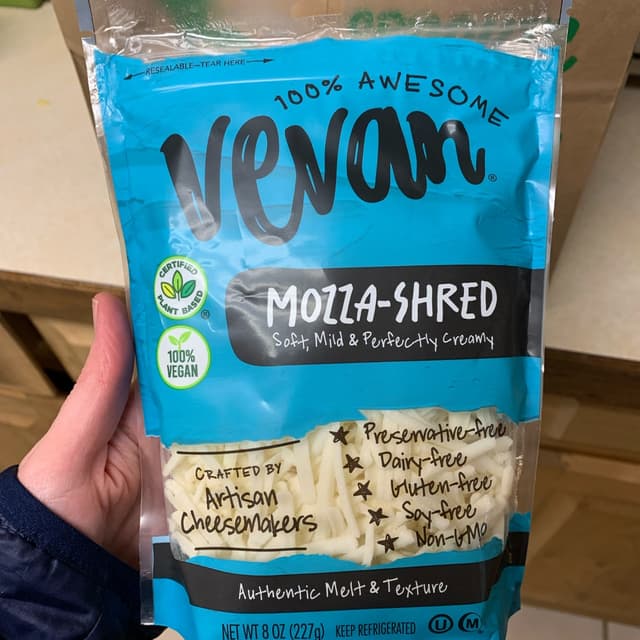 Mozza-shred is a plant-based vegan mozzarella shred that is perfect for satisfying your cheesy cravings. Made from a blend of plant-based ingredients, these shreds have a gooey texture and rich flavor that melt just like the real thing. They are ideal for use on pizza, pasta, sandwiches, and other dishes. With positive reviews from customers, mozza-shred is a great option for those who want to enjoy cheesy food without consuming dairy.