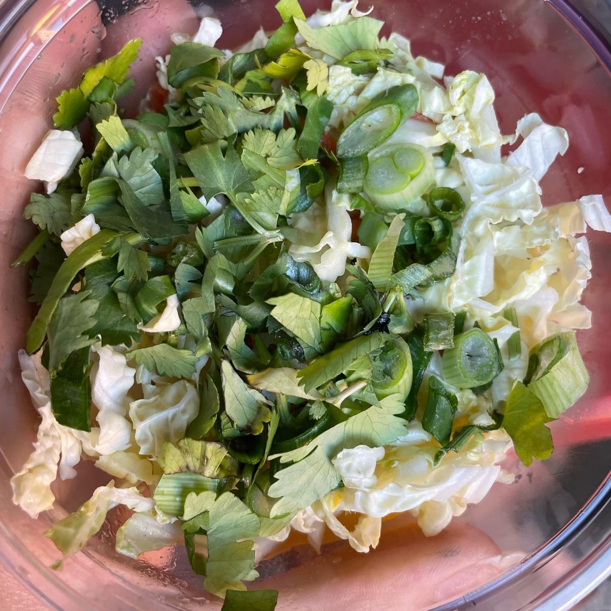 Julienned napa and carrots, wok toasted sesame seeds, and tossed in a zingy sesame-ginger vinaigrette. I usually get the spicy cucumber salad which is amazing, but they were sold out of it since it was during the deep Ellum arts fest that we went! Overall, a tasty blend.