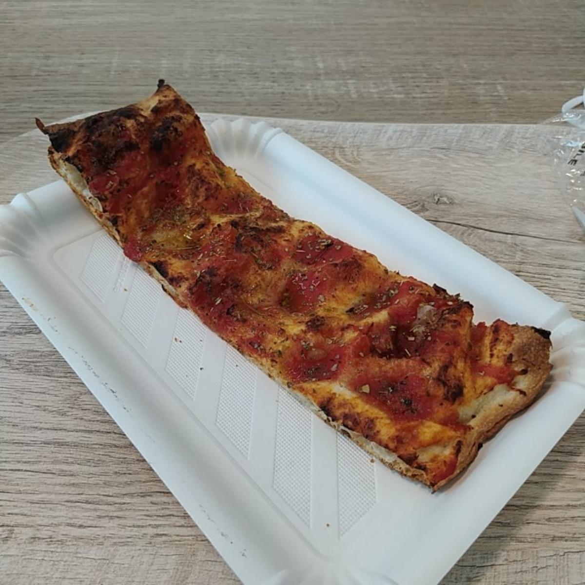 una fetta di pizza pre-volo per salutare l'Italia! molto croccante, buona