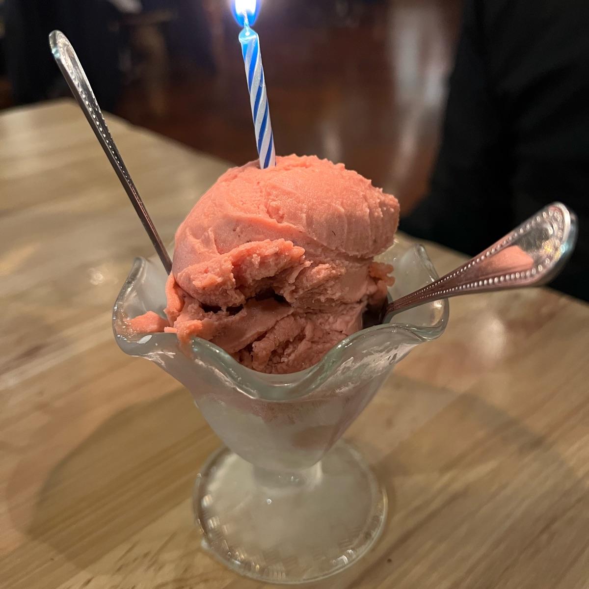 Finally! Lol. The 3rd and last part of that dinner event from a while ago.This was an on the house raspberry sorbet. Totally vegan. Absolutely delicious.