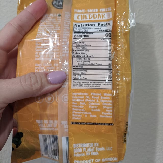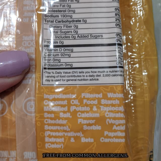 They smell like a mix of American cheese slices and generic "fake cheese," but taste pretty good when melted. They also had a decent melt/pull factor when melted on a veggie burger on the grill, so that's promising. They won't look melted but are when you pull at it! Needed to find a replacement for my beloved Miyoko's slices, and so I decided to give these a try first.