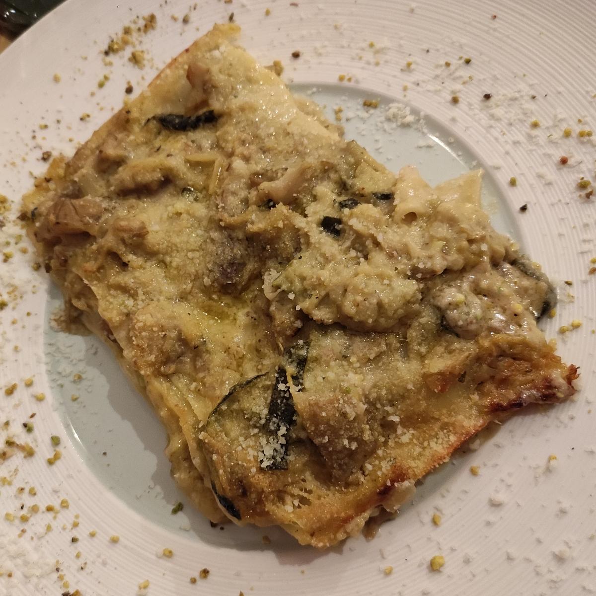 Una bella porzione di lasagne di Pasqua con carciofi, melanzane, besciamella e pistacchi 🥰 super!