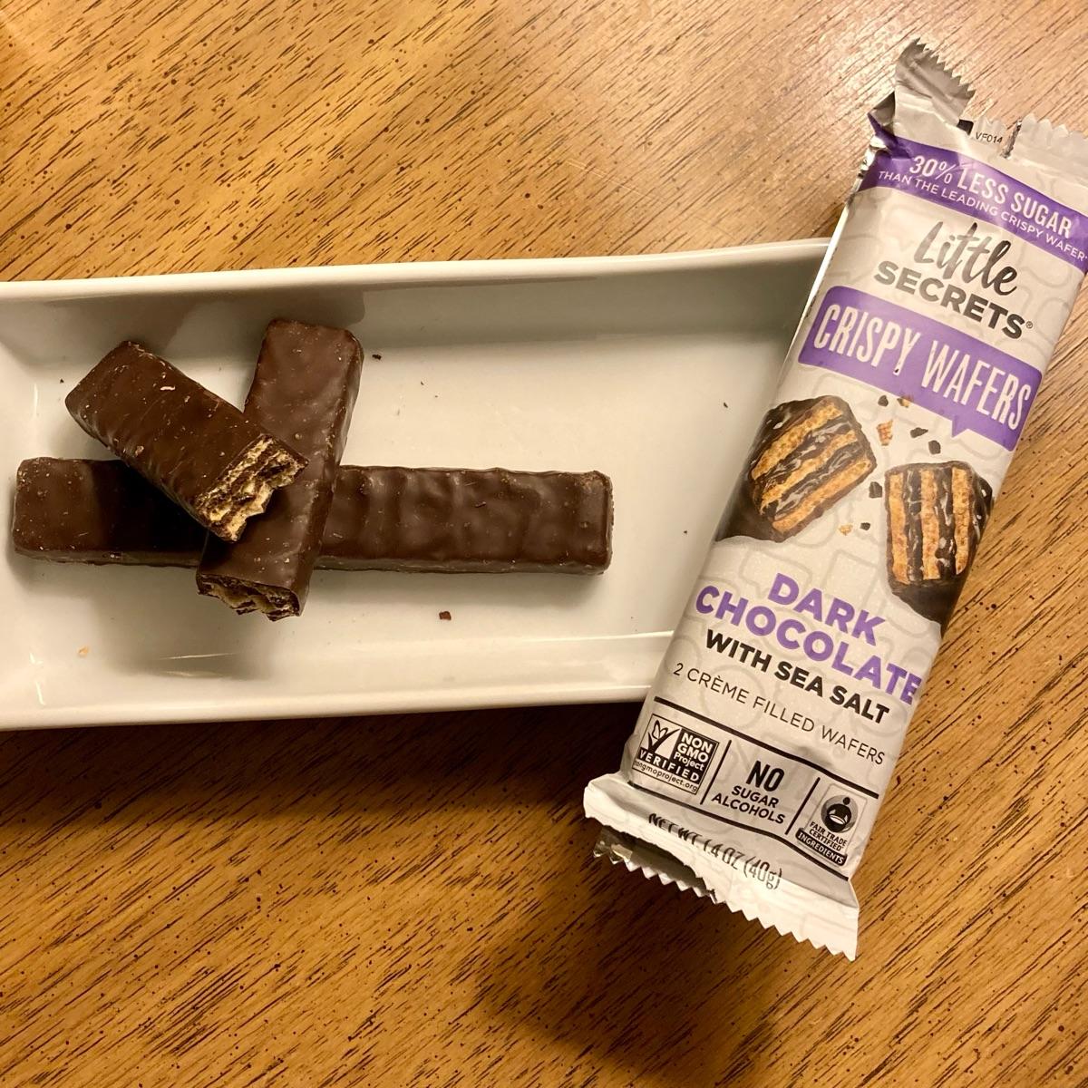 Mmm…rich, dark chocolate and sea salt, plus crunchiness for contrast. The crispy wafers hold up to the name. Sat fat 7g and 16g added sugar, makes me cringe at what must be the #s in the old classic. Still, I usually only eat 1/2 - 1 bar at a time. The challenge is that this product, along with a number of others, isn’t certified vegan because they are made on shared equipment with products that contain dairy (wrapper states may contain milk, tree nuts, eggs). Same situation for some GF items. Sounds like a dedicated line is needed. I did read on the website they’re transitioning to fully recyclable / compostable packaging by 2025. #nongmo #fairtrade #chocolate #chocoholic #littlesecretsco #secretsout