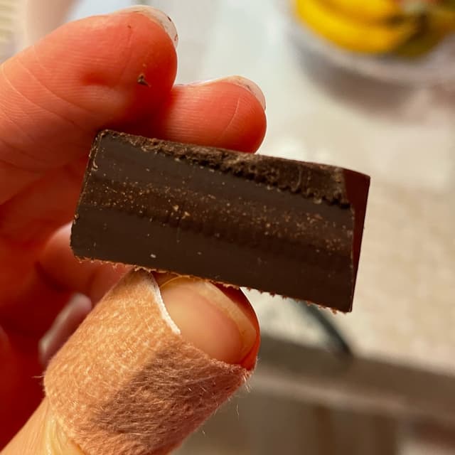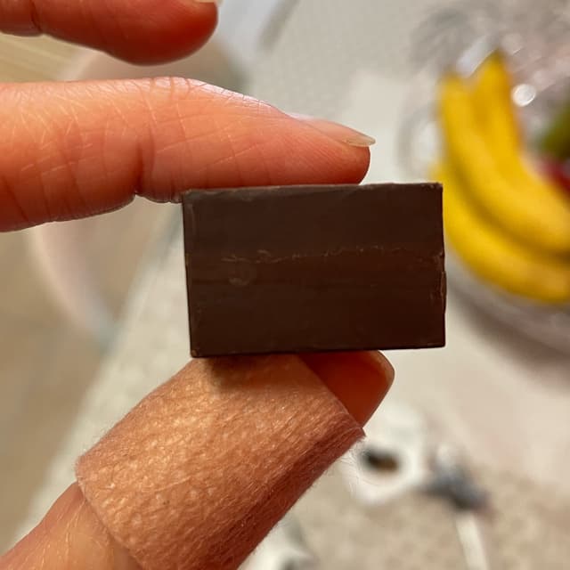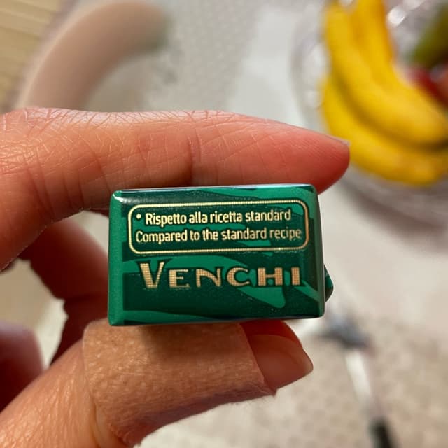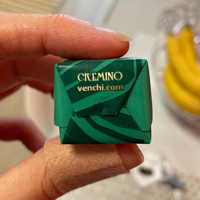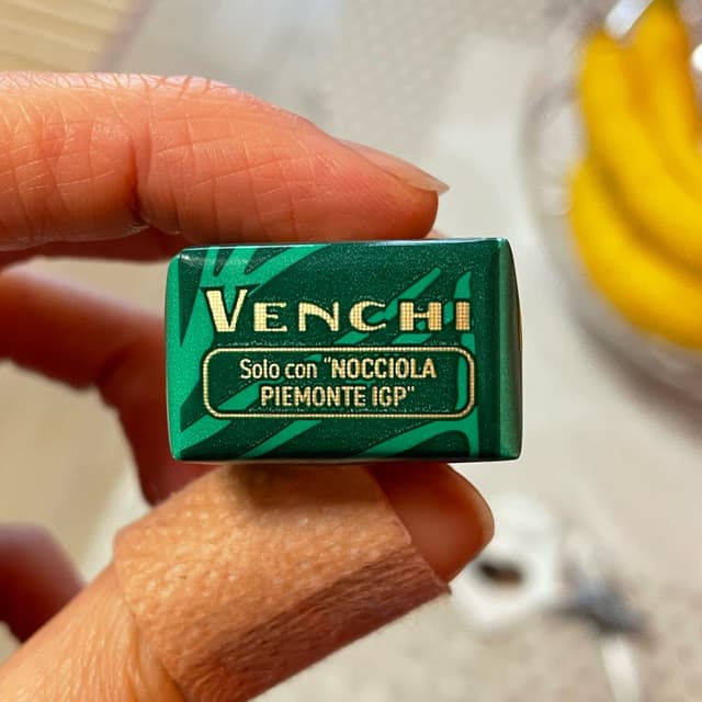 It is not a classical “cremino” since you can barely distinguish the different layers. The middle is a little bit lighter than the edges. The texture is quite solid rather than creamy. It has less sugar than the other chocolates from Venchi and you can really notice that it’s less sweet than usual. All in all it has a deep cocoa and hazelnut flavour that I would recommend if you enjoy dark chocolate.