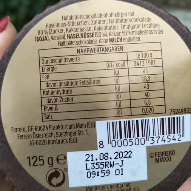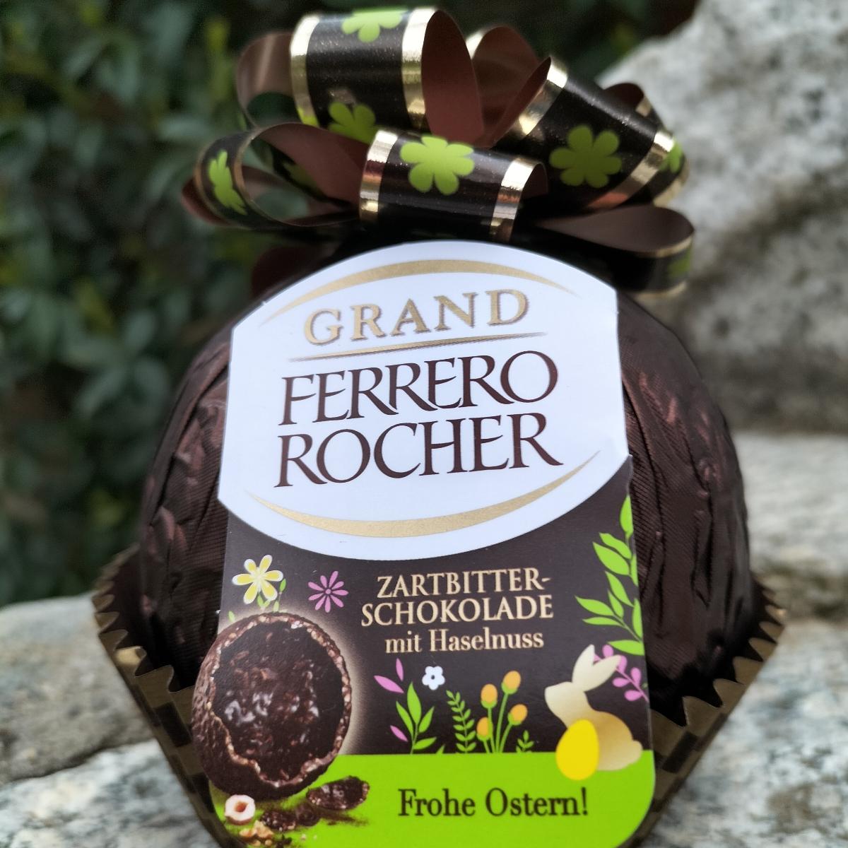 Buon cioccolato fondente con nocciole, il classico Ferrero Rocher però qui in versione pasquale 😊 molto carina anche la confezione ed il fiocco 🔝