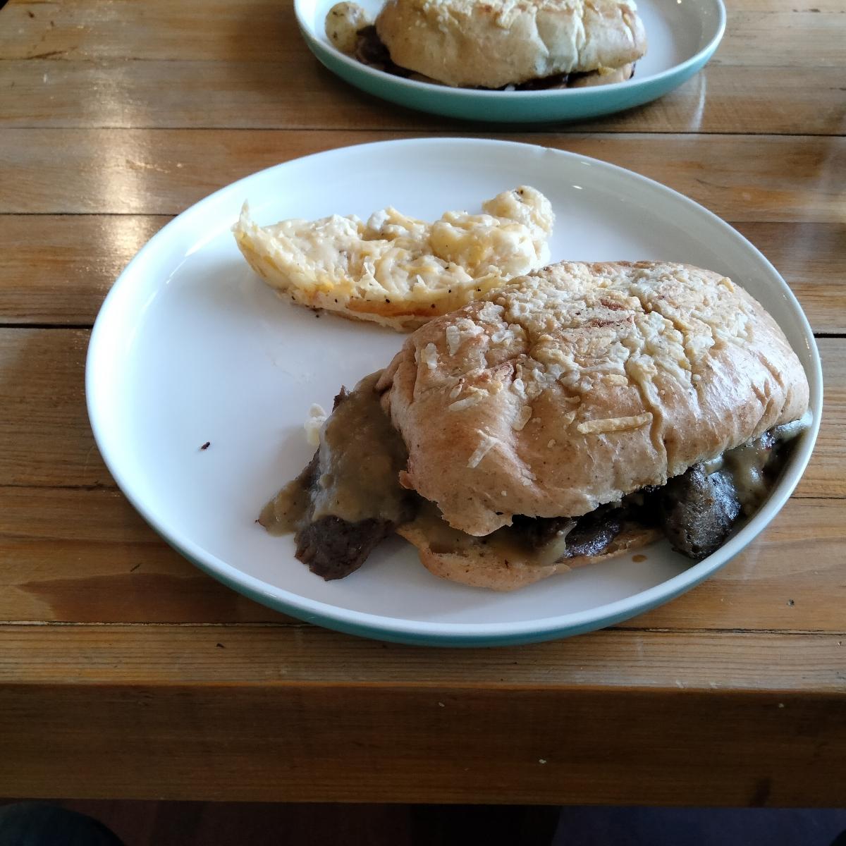 Delicioso sub de lomo de seitán, el pan crujiente y bien rico hace que los sabores del lomo se intensifiquen