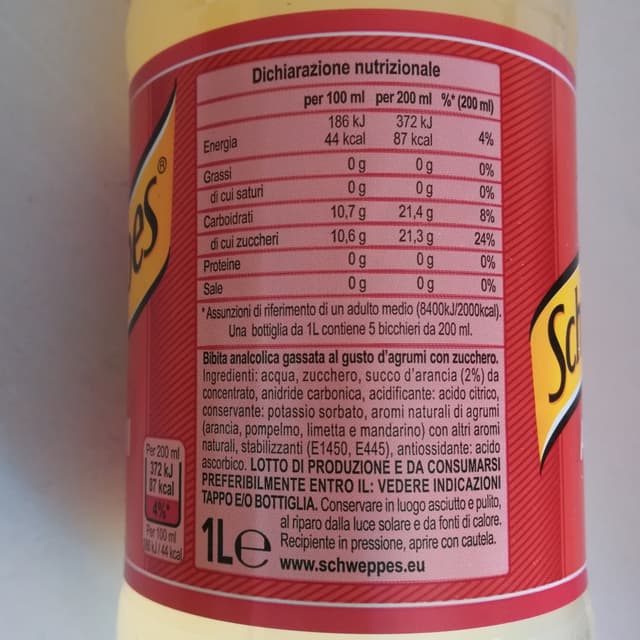 Schweppes gusto agrumi. Un bevanda dal sapore gradevole, fresca e dissetante