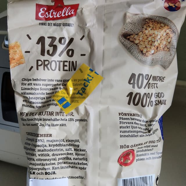 Estrella Linschips Sourcream & Onion is a nice snack with a light taste of onion and not much sour! Very crispy! And is totally Vegan! Well packed and easy to open!
