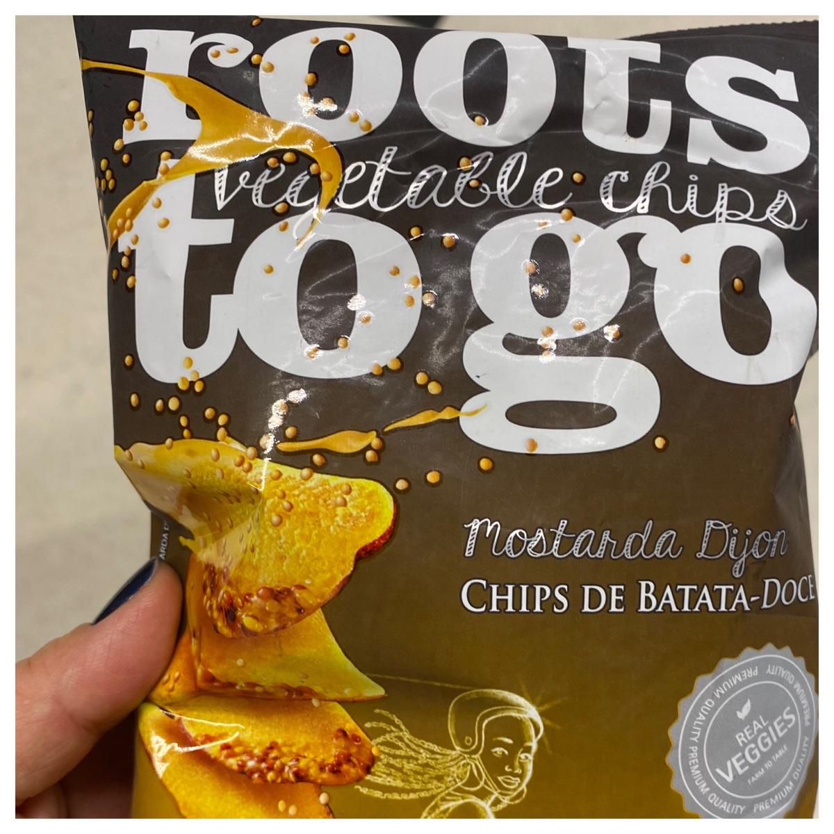 Salgadinho do tipo snack de batata doce com adição de mostarda Dijon, que confere um sabor mais marcante aos chips.