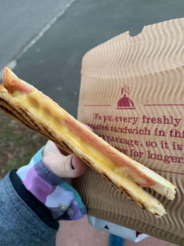 This is absolutely beautiful. Not the best toastie in the world but still gorgeous. Yummy quorn ham and some kind of Vegan cheese make this a lovely sight to see at a coffee shop. Nom nom nom.