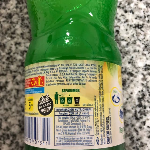 Tiene sulfitos! Es rico pero no como el Limón fruta! Para salvarte esta genial. Dura muchísimo en la heladera.